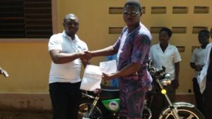 C’est ainsi qu’en collaboration avec ses partenaires AKTION PIT TOGOHILFE et l’Etat de Bavière (Allemagne), elle a accompagné les structures sanitaires avec du matériel roulant à savoir des motos pour lutter contre cette épidémie. Au total, quinze (15) localités de dix (10) préfectures du Togo ont été dotées de moto notamment : TIMBOU, TAKPAMBA, BAOULE, ATALOTE, DJAMDE, FAZAO, BODJONDE, SESSARO, TCHIFAMA, BASSAR, SANDA, GUERIN KOUKA, NATCHITIKPI, TCHARKPANGA, KOUMA APOTI. L’équipe de AIMES-AFRIQUE, dans l’accomplissement de sa mission qui est de rapprocher l’hôpital des populations enclavées ; a donc équipé tous ces centres précités en matériel roulant pour aider les agents de santé à se déployer sur le terrain et donc desservir les localités les plus enclavées surtout pour les campagnes de vaccination et les sensibilisations. Aussi, ces motos serviront – elles à faire le relais des messages de santé publique de AIMES-AFRIQUE pour le bien des populations. Le Directeur Exécutif Adjoint M. KOKOU Fayrouze, en remettant les motos aux responsables des structures sanitaires, les a exhorté à en faire bon usage.